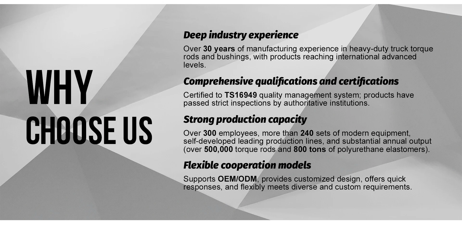 Prodotti principali: Barra di torsione, boccola torbiera, boccola a balestra, cuscinetto isolante, supporto motore